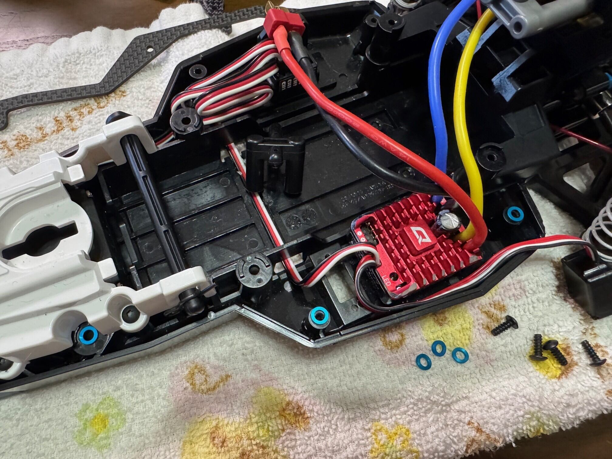 なお、本ステフナを装着する際、シャーシとステフナの間にタミヤ製アルミスペーサを挟む事で