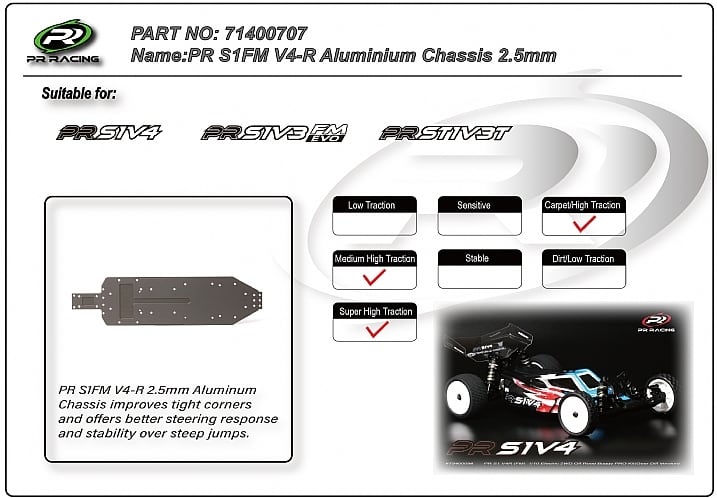 PR Racing NO:71400707 Name:PR S1FM V4-R Aluminium Chassis 2.5mm